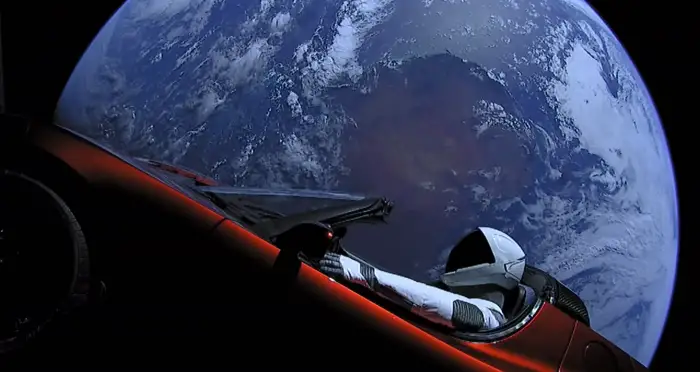 Закріплений на корпусі ракети SpaceX Falcon Heavy електричний родстер Tesla – із власної колекції Ілона Маска. Зараз він знаходиться на відстані понад 377 мільйонів кілометрів від Землі та наближається до Марса.