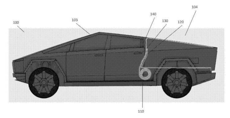 Як зазначає ресурс Electrek, рекламні зображення пікапа Cybertruck з кришкою кузова з сонячних панелей демонструються компанією не тільки для краси. Відповідна патентна заявка присутня в базі даних профільного американського відомства. У документації пояснюється, що кришка вантажного відсіку пікапа, яка складається з вузьких секцій, може згортатися в рулон, який зберігається біля передньої стінки кузова, при цьому зовнішня поверхня такої кришки містить активні сонячні панелі, що дозволяють живити бортові споживачі та заряджати тяговий акумулятор. Що характерно, кришка при цьому вийде і досить міцною, оскільки зможе витримувати вагу людини або розміщення порівнянного по масі вантажу. Дах кабіни пікапа теж може оснащуватися сонячною панеллю. Вочевидь, сонячні панелі будуть пропонуватися покупцям як опція за доплату.