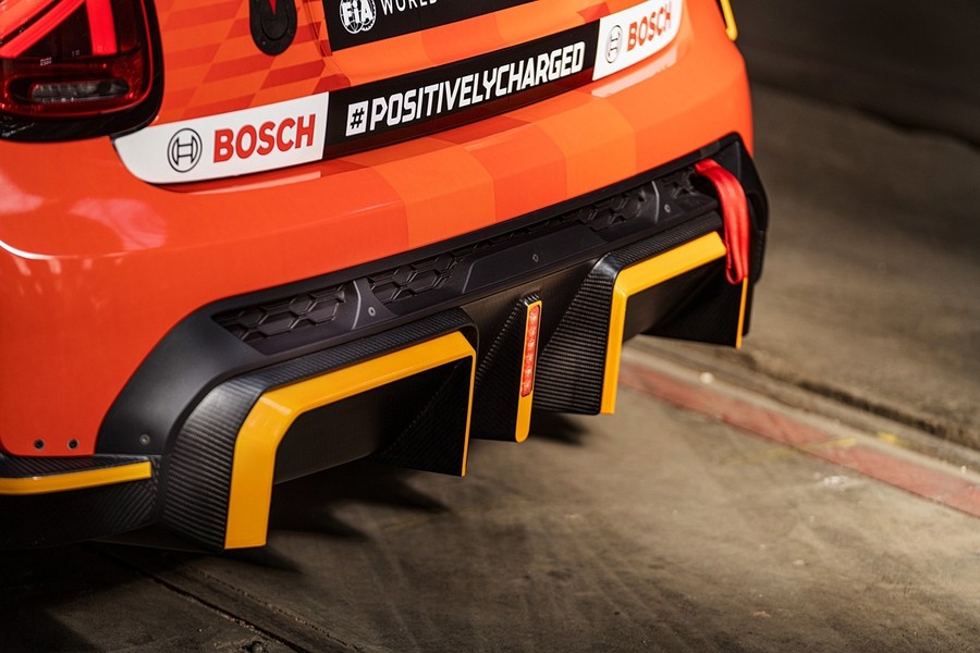 Легкі колісні диски діаметром 18 дюймів пофарбовані в контрастне поєднання оранжевого і чорного кольорів. Такі аеродинамічні елементи, як спойлери і спідниці, надруковані на 3D-принтері. Жовті лінії на боковинах за задумом проєктувальників демонструють, в яких зонах проходить повітряний потік на великій швидкості.