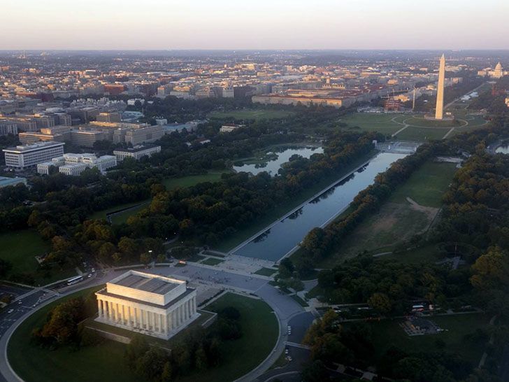 Меморіал Лінкольна в 1917 році. Тоді ніхто не міг уявити, що в 2000-х роках щороку шість мільйонів людей будуть відвідувати це місце. Меморіал, розташований на берегах річки Потомак, включає величезну статую сидячого Авраама Лінкольна, дві кам’яні плити, на яких викарбувані тексти другого інавгураційного звернення Лінкольна та його Геттісбурзька промова. Болотисту місцевість пізніше перетворять на штучне водоймище.