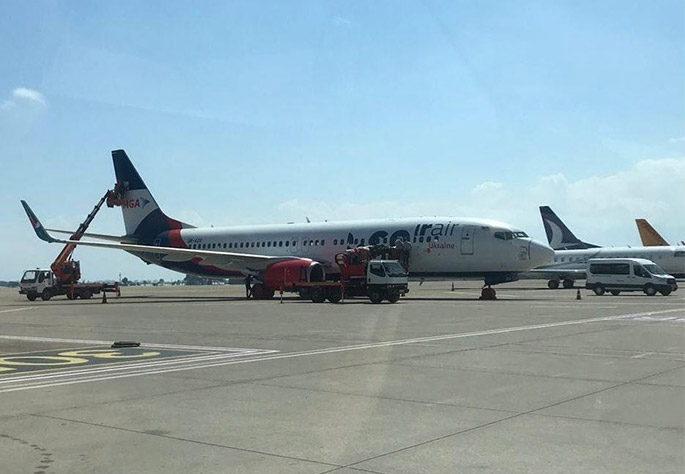 Авіаційний турецький портал airporthaber опублікував фотографію процесу, як ліврею українського авіаперевізника закривають наклейками із розпізнавальними знаками MGA.
