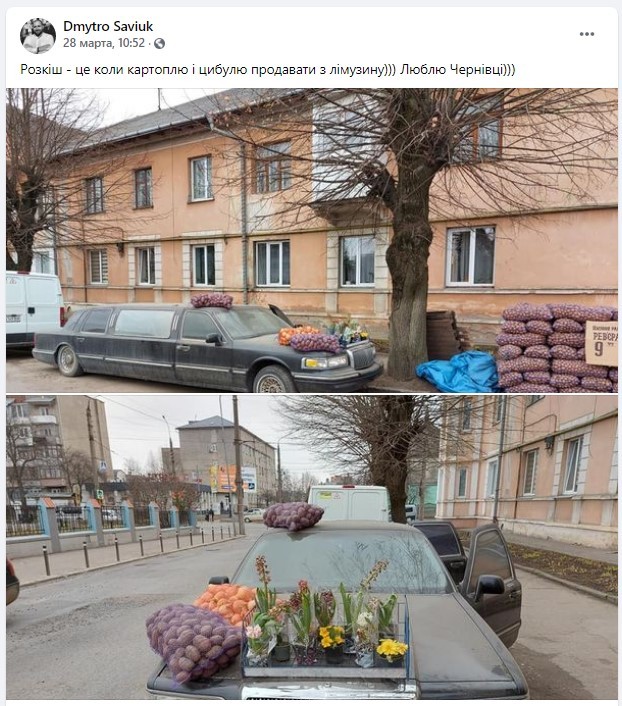 У Чернівцях помітили раритетний автомобіль Lincoln Town Car 2, який використовується за досить незвичним призначенням. З капота лімузина продають овочі та вазони.