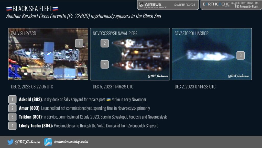 На них видно, що у Новоросійську 5 грудня було одразу два “Каракурти” – добудований і випробуваний корабель “Амур”, а також, імовірно, “Туча”.