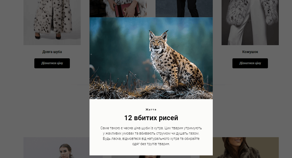 Наприклад, норкова шуба коштує 45 убитих норок, а шуба з рисі – 12 убитих життів.