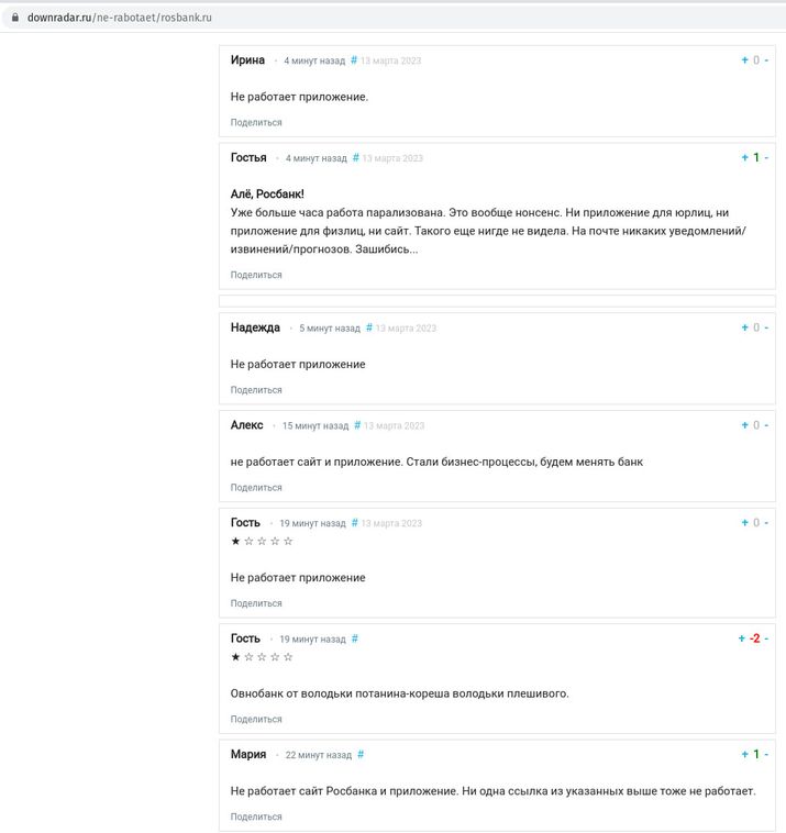 Користувачі росбанку масово скаржаться в інтернеті на збої в роботі банку.