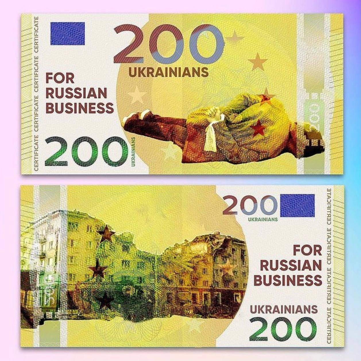 На купюрах Євро, якими користується весь Європейський Союз, намалювали вбитих українців руками російських солдатів.