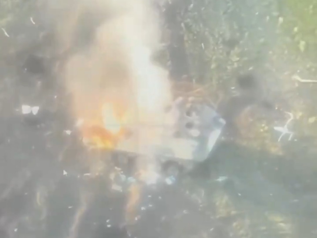 На кадрах з українського безпілотника видно, як кормова частина ворожого бронетранспортера охоплена полум’ям. Причина ураження машини поки що невідома, проте експерти говорять про влучання одного або кількох FPV-дронів.