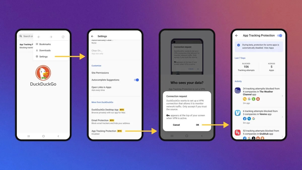 Північноамериканська компанія DuckDuckGo, що розвиває однойменний анонімний веб-оглядач, представила інструмент для Android-смартфонів. Він призначений для захисту користувачів від збору даних мобільними апплетами й стеження.