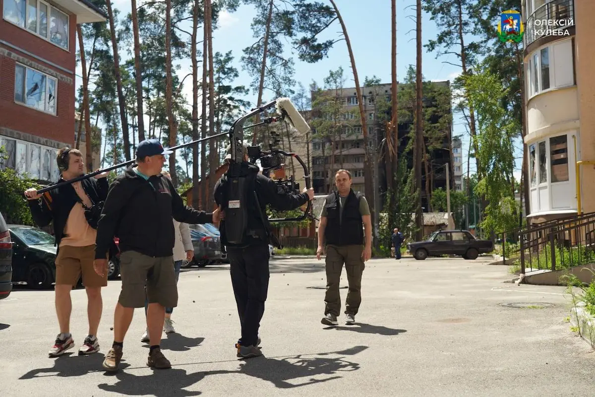 Кулеба показав знімальній групі один із найбільш зруйнованих житлових масивів Ірпеня та пригадав, як минув перший місяць війни.