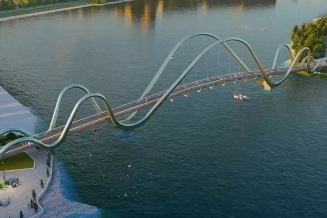 Нагадаємо, що міст обіцяють побудувати до середини наступного року (терміни вже не один раз переносили). Він буде довжиною 140 метрів, оснащений динамічним підсвічуванням і нагадувати форму хвиль. Хвилі підніматимуться до центру і “затихатимуть” до країв конструкції.
