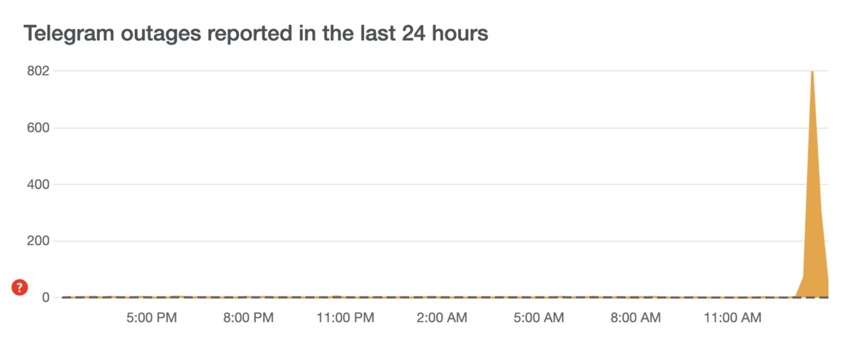 Проблеми торкнулись мобільного застосунку та десктопної версії Telegram, а веб-версії продовжувала працювати. У пікову хвилину збою сервіс отримав понад 800 звітів про проблеми.