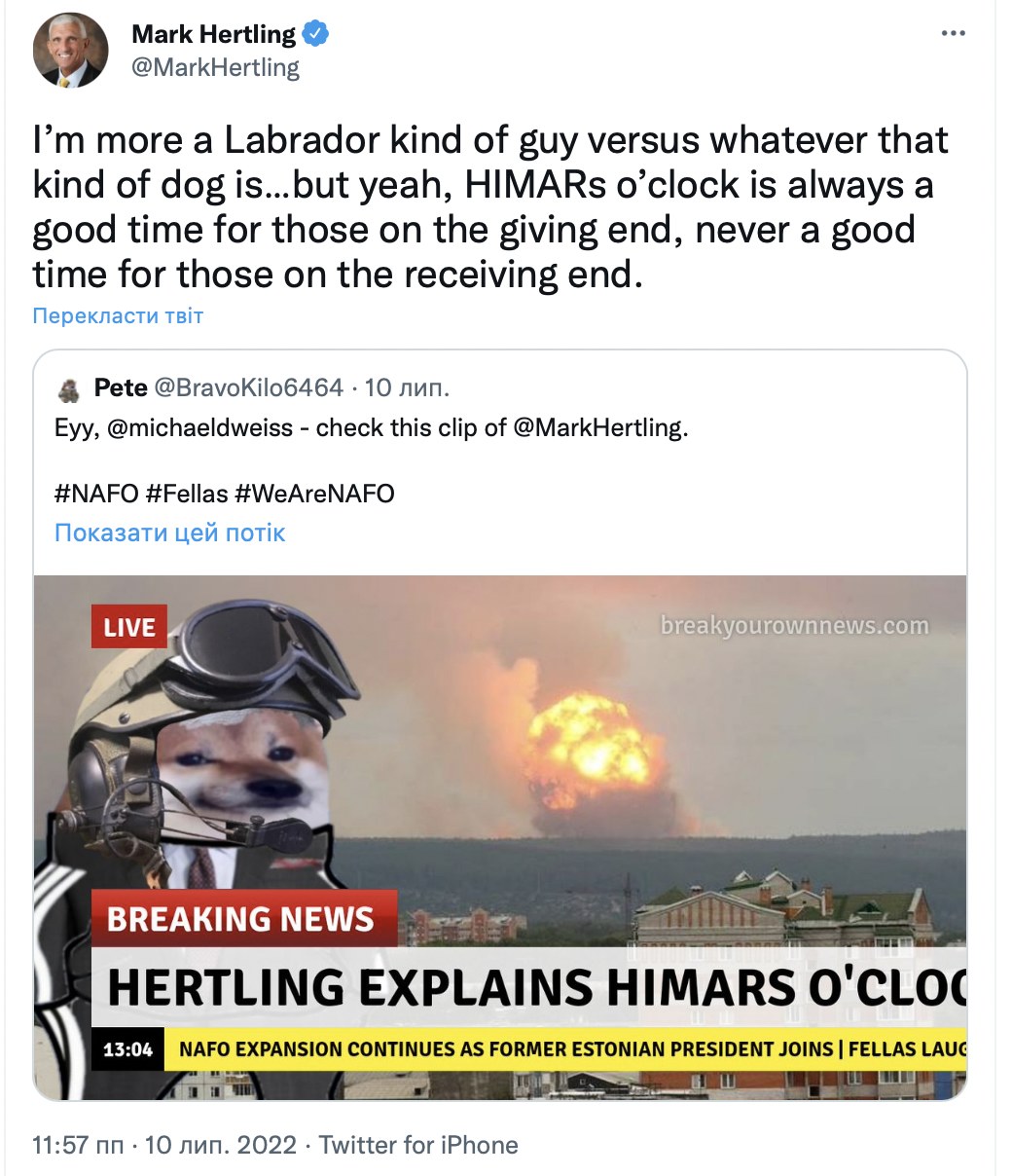 NAFO стали набирати популярність у червні, коли потролили російського дипломата Михайла Ульянова. Він сварився з «чуваками», й програвав через свої прокремлівські наративи.