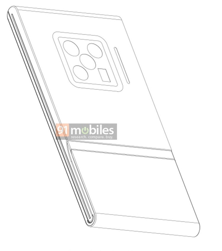 Мова йде про пристрій в моноблочному форм-факторі. Смартфон буде обладнаний гнучким екраном, який крім фронтальної панелі також буде охоплювати нижню частину тильної панелі корпусу. Причому ця частина екрану буде відгинається, і смартфон буде свого роду розкладачкою, тільки в інший бік. Уявлення про зовнішній вигляд апарата можна отримати завдяки опублікованим патентним ілюстраціям.