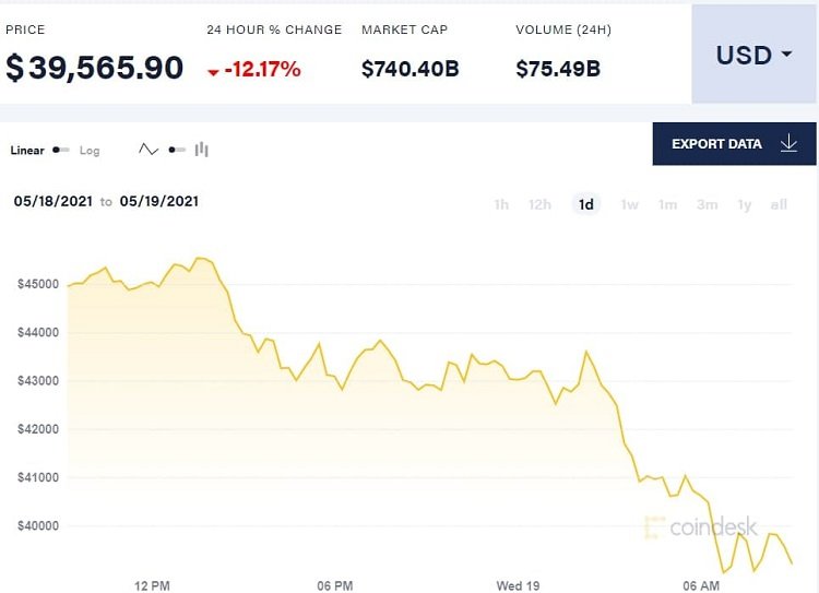 Тепер вартість криптовалюти впала приблизно на 40% з рекордних $ 65 000 за одну «монету» до приблизно $ 39 000. Такий рівень в останній раз реєструвався до того, як виробник електромобілів розповів про свої інвестиції в «цифрову готівку».