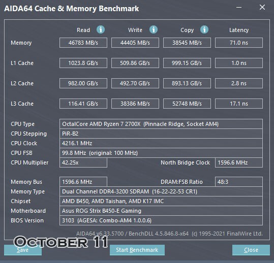 Портал TechPowerUp повідомляє, що у наявного в редакції Ryzen 7 2700X з типовою затримкою кеш-пам’яті L3 в 10 нс при переході на Windows 11 затримка в роботі L3-кеша збільшилася до 17 нс.