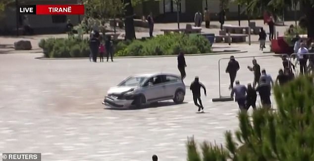 Інцидент стався в центрі Тірани біля будівлі парламенту. Водій хаотично рухався по площі, де було багатолюдно.