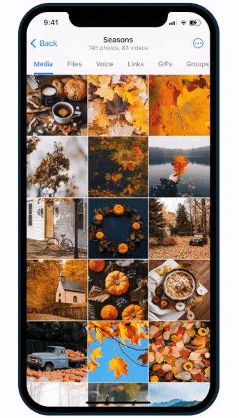 З профілю будь-якого чату в Telegram можна швидко переглянути всі фотографії, відеозаписи та файли, які були надіслані в нього. Тепер на вкладці ‘Медіа’, ‘Файли’ та ‘Голосові повідомлення’ з’явився новий блок з датою, потягнувши за який можна ще швидше переміщатися розділом.