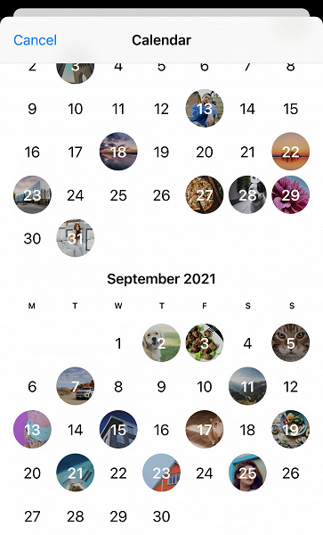 Також у розділі «Медіа» з’явився календар — він доступний у новому меню у верхньому правому кутку на вкладці «Медіа» або просто після натискання на блок з датою.