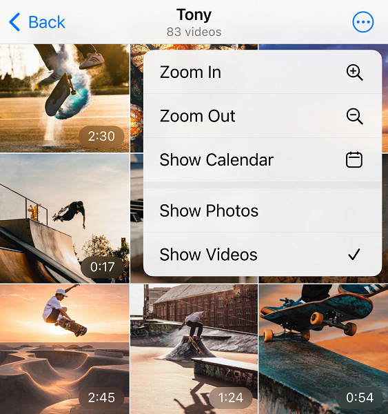 У меню також можна вибрати, які матеріали будуть показані на вкладці «Медіа» — лише фотографії, тільки відеозаписи або й те й інше.
