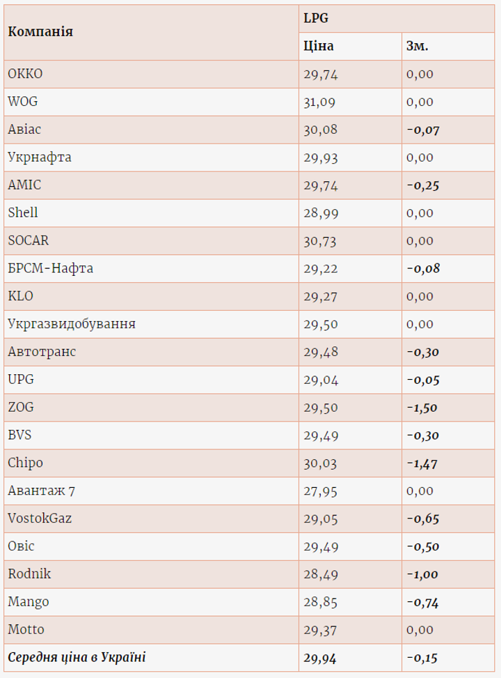 У мережах UPG, “БРСМ-Нафта”, Rodnik, Mango і VostokGaz автогаз здешевшав 5-65 коп./л (див. табл.).