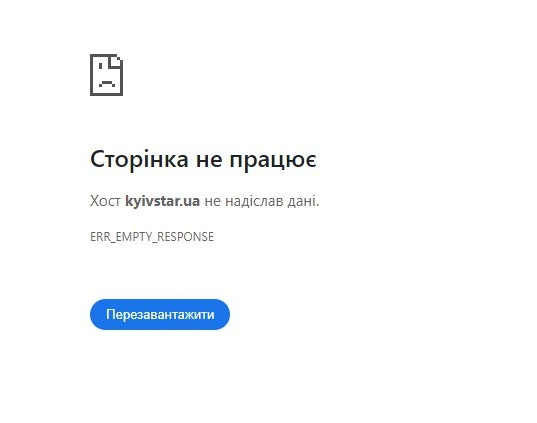Так, під час спроби входу на сайт Київстару видає помилку, сторінка не працює.