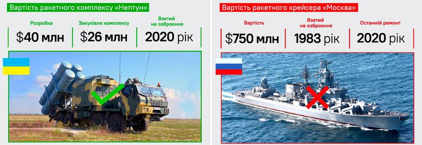 Він потонув ©. У ніч з 13 на 14 квітня 2022 року флагман чорноморського флоту росії, ракетний крейсер «москва» був атакований двома протикорабельними ракетами «Нептун», розробленими в конструкторському бюро «Луч». За непідтвердженими офіційно даними атаки цими ракетами передувала атака з повітря безпілотником «Байрактар», який придушив та/або відволікав системи ППО крейсера. Спочатку російська влада повідомила, що на судні виникла пожежа, екіпаж евакуйовано і воно своїм ходом рухається до Севастополя. Цю інформацію підтверджували у Пентагоні. Але 14 квітня російське командування офіційно підтвердило загибель судна, пославшись на те, що воно втратило під час шторму (якого, як ми бачимо на знімках, не було) «стійкість», тобто здатність корабля повертатися з крену, і затонуло. Forbes оцінює вартість лінкора «Москва» у 750 мільйонів доларів (судно було збудовано ще за часів СРСР на Миколаївському суднобудівному заводі та будь-які оцінки дуже умовні), а вартість розробки ракети «Нептун» у $40 мільйонів.